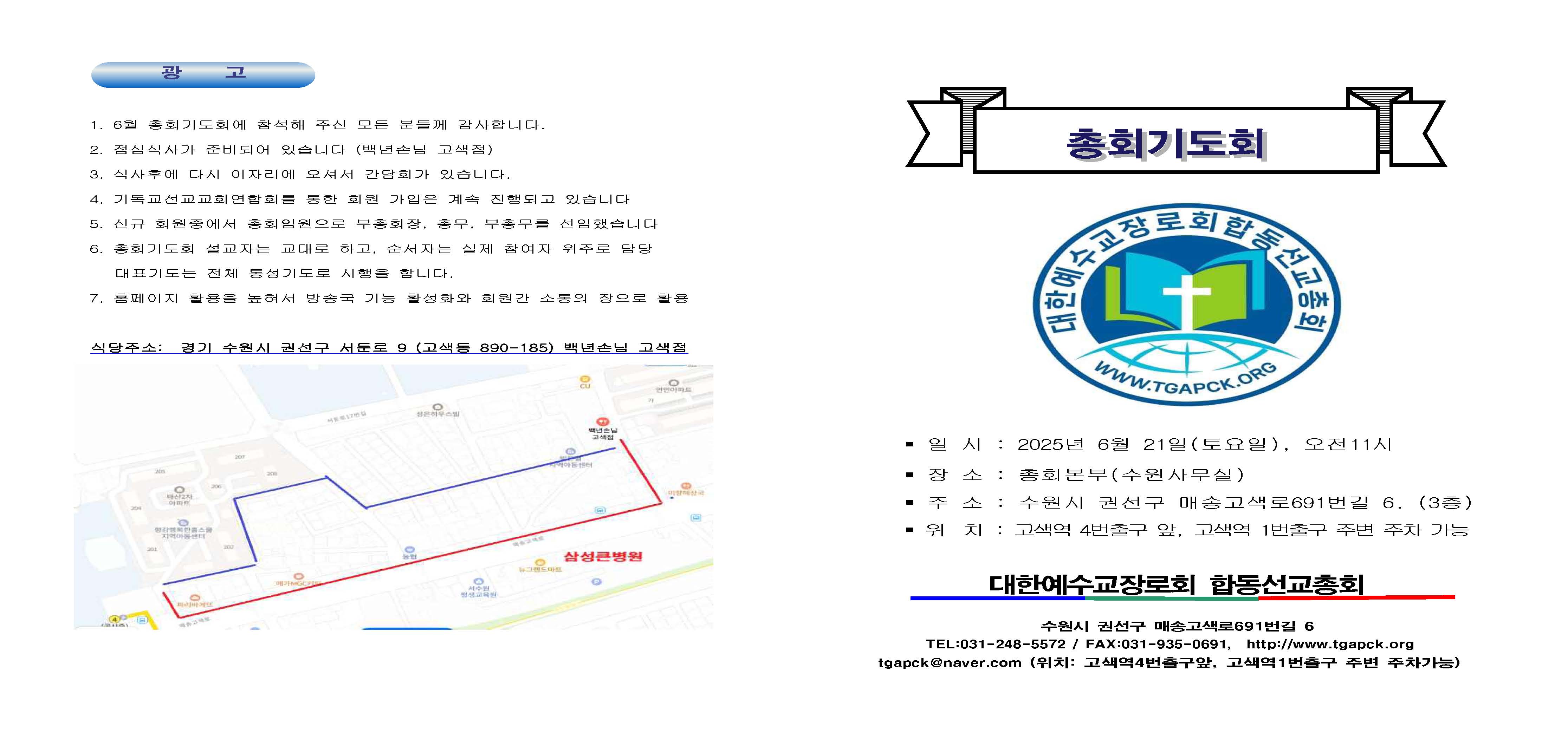 안녕하세요 6월 총회기도회 일정을 공지합니다
